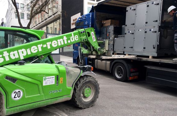 Vermeidung von Zwischenlagerung und Umpalettierung, sowie das Verkehrsaufkommen im öffentlichen Raum und auf der Baustelle vermindern. Letztendlich beschleunigt das Ihren Bau und senkt Kosten.